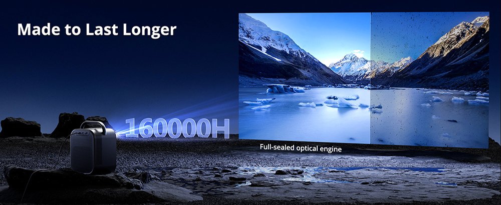 Super size up to 200", 5G Wi-Fi & 5.1 Bluetooth, Dustproof Technology, 160000 Hours Lifespan